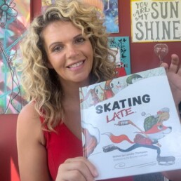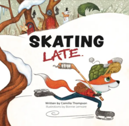 Her first children’s book, Skating Late, is a fast-paced adventure tale starring a fast fox who faces all kinds of Canadian conundrums after they wake up late and have to skate to school on an icy and blustery day. This raucous read-aloud celebrates Canadian winter sports and showcases our wholly wintry weather, following our wily fox through a series of challenges that lead to a hilarious punchline twist ending.